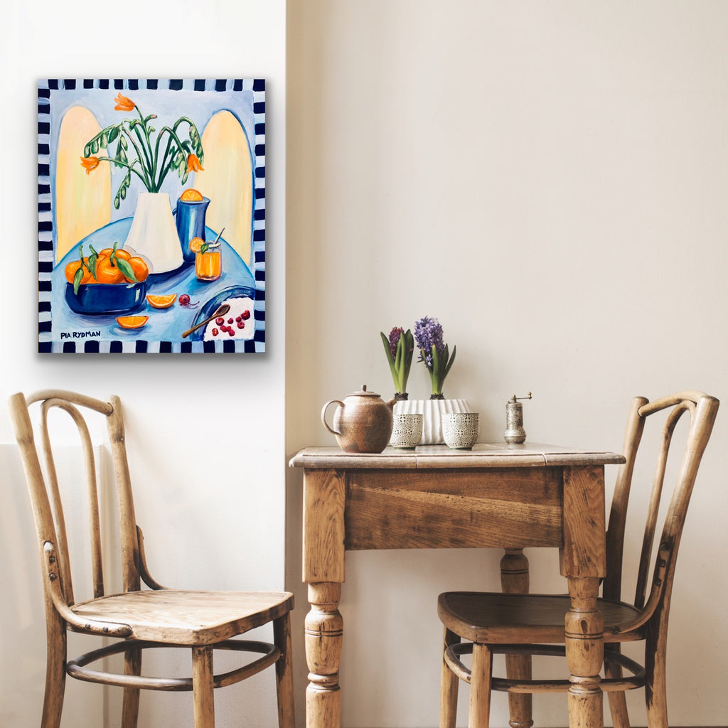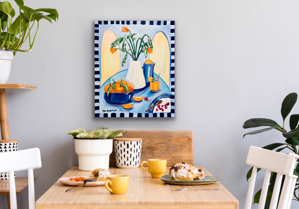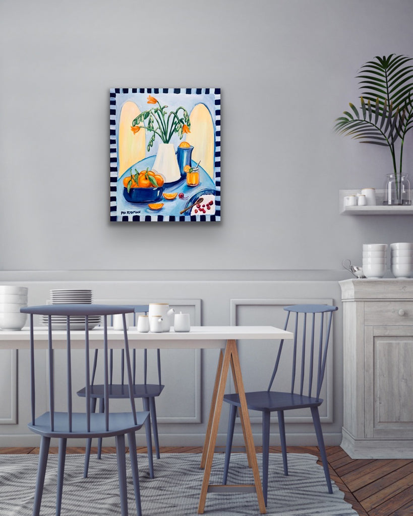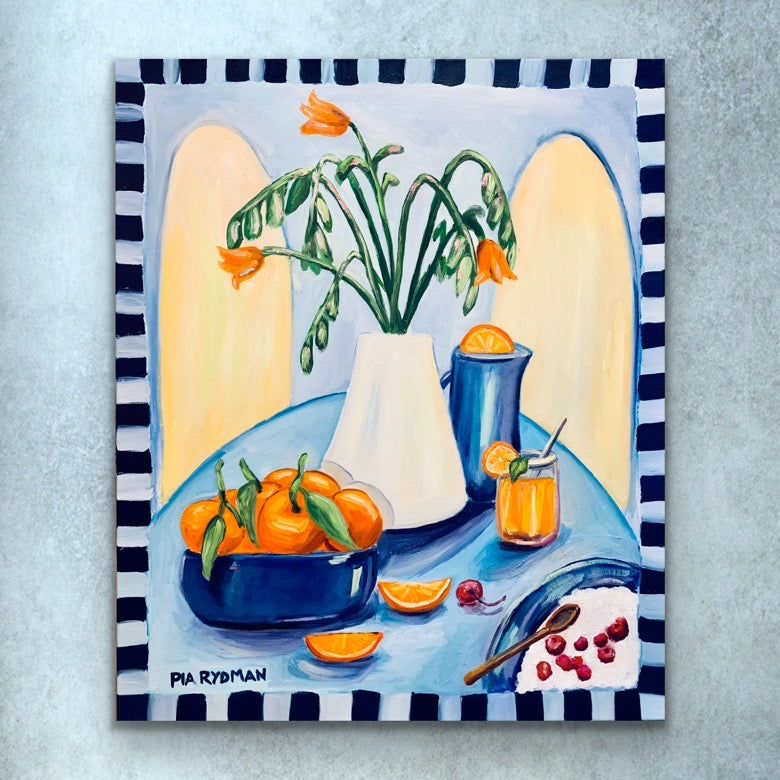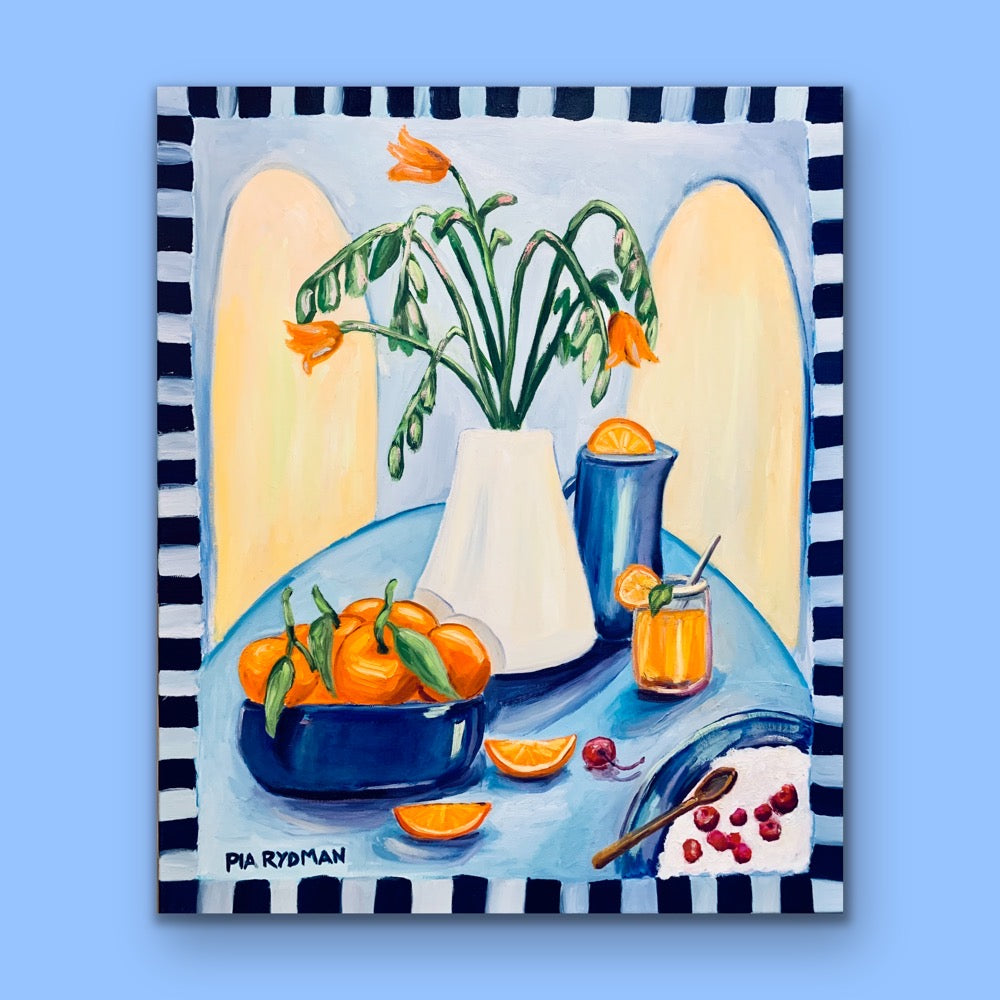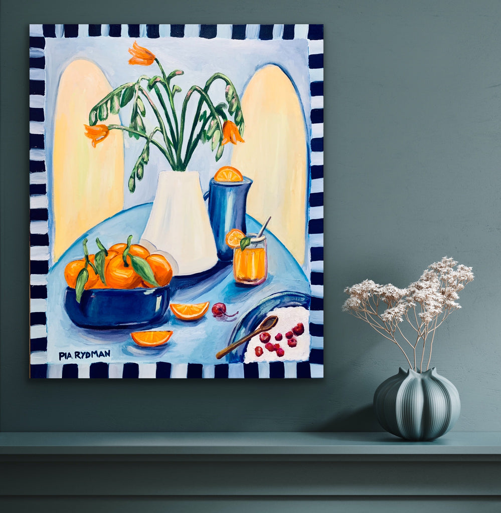 Välipala välimerellä -teos oli ensi kertaa esillä Helsingin Messukeskuksessa osana Kevätmessut 2023 Trendiosastoa. Teoksen herkulliset ja hehkuvat sinisen ja oranssin värit vievät ajatukset Välimeren kuuman auringon alle.